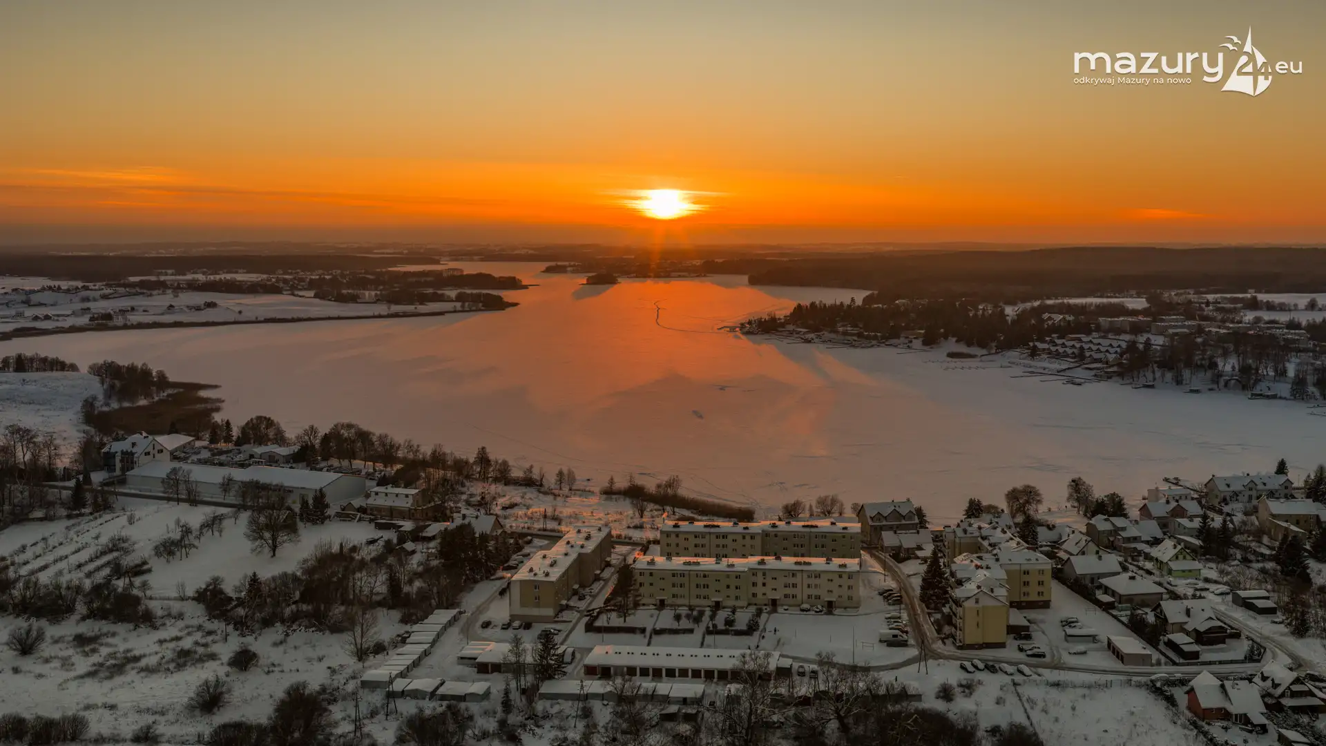 Zachód słońca nad jeziorem Ryńskim z drona, luty 2026 r. - zdjęcie 17