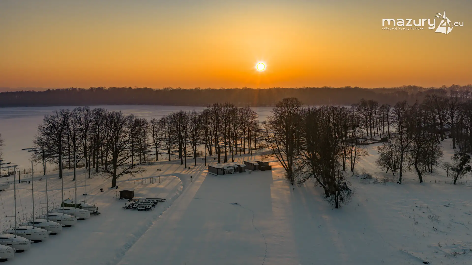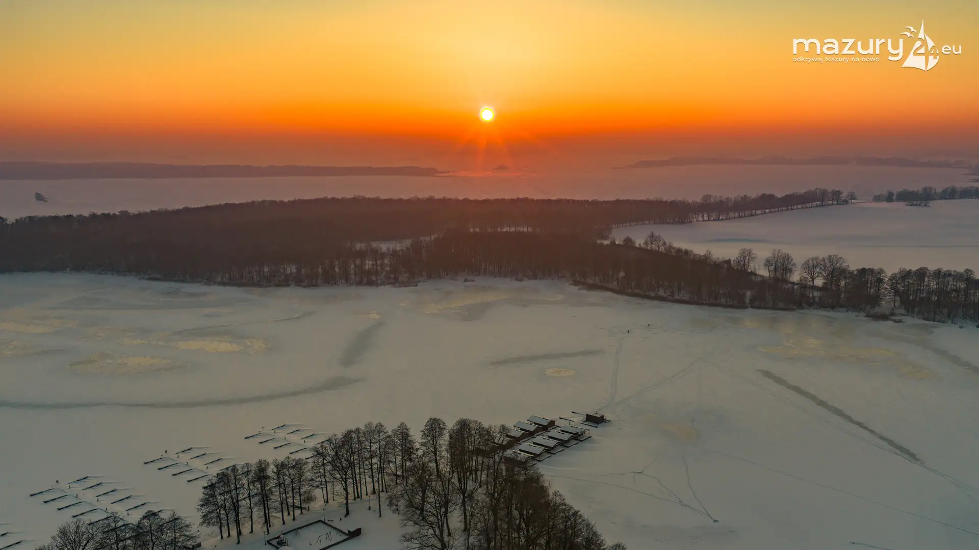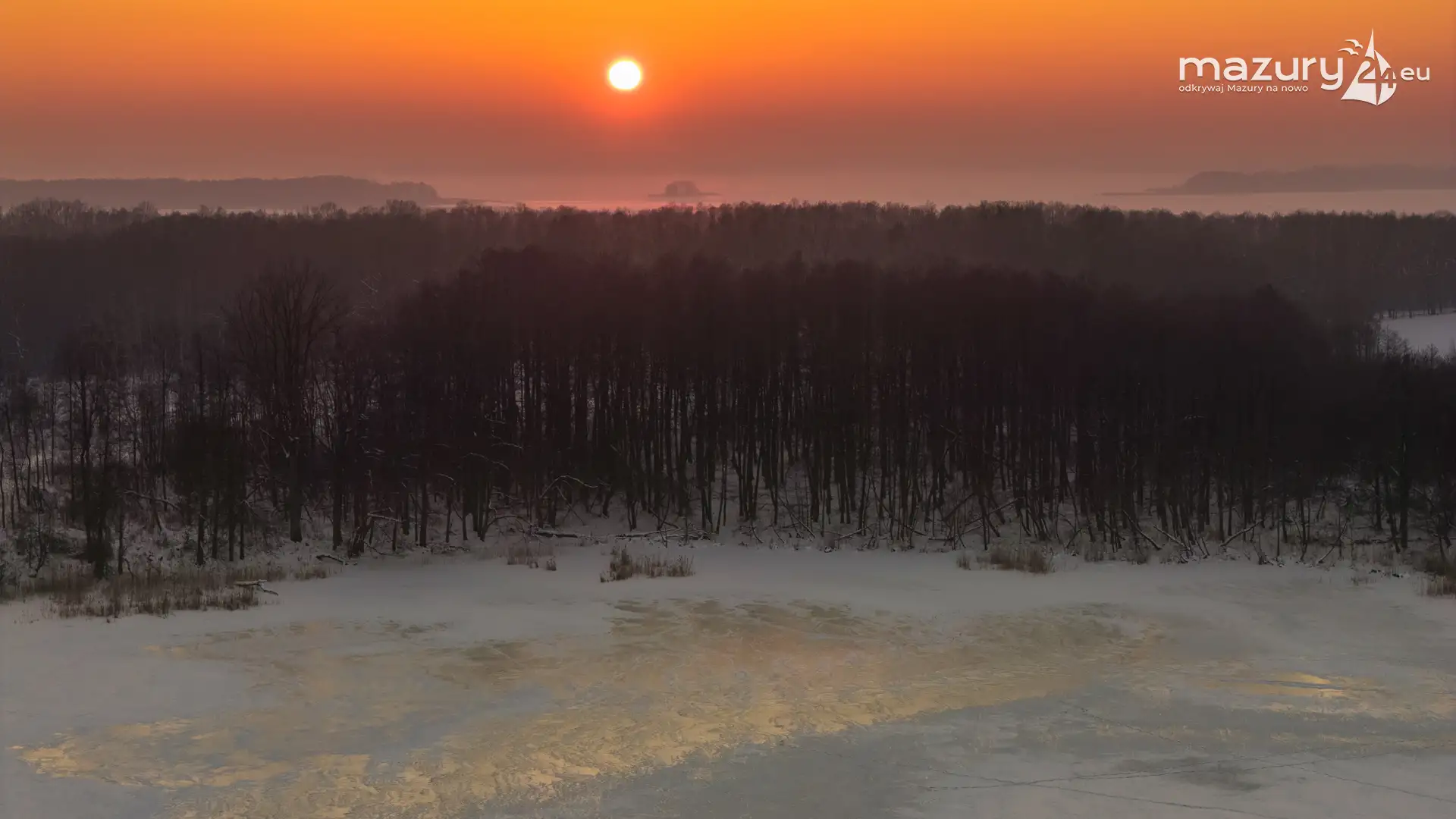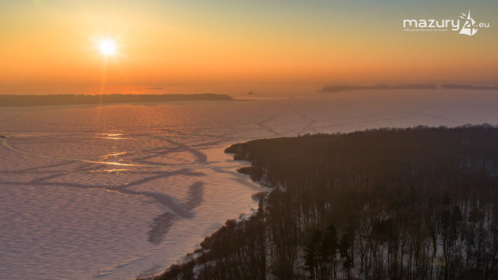 Zachód słońca nad jeziorem Bocznym z drona, styczeń 2026 r.