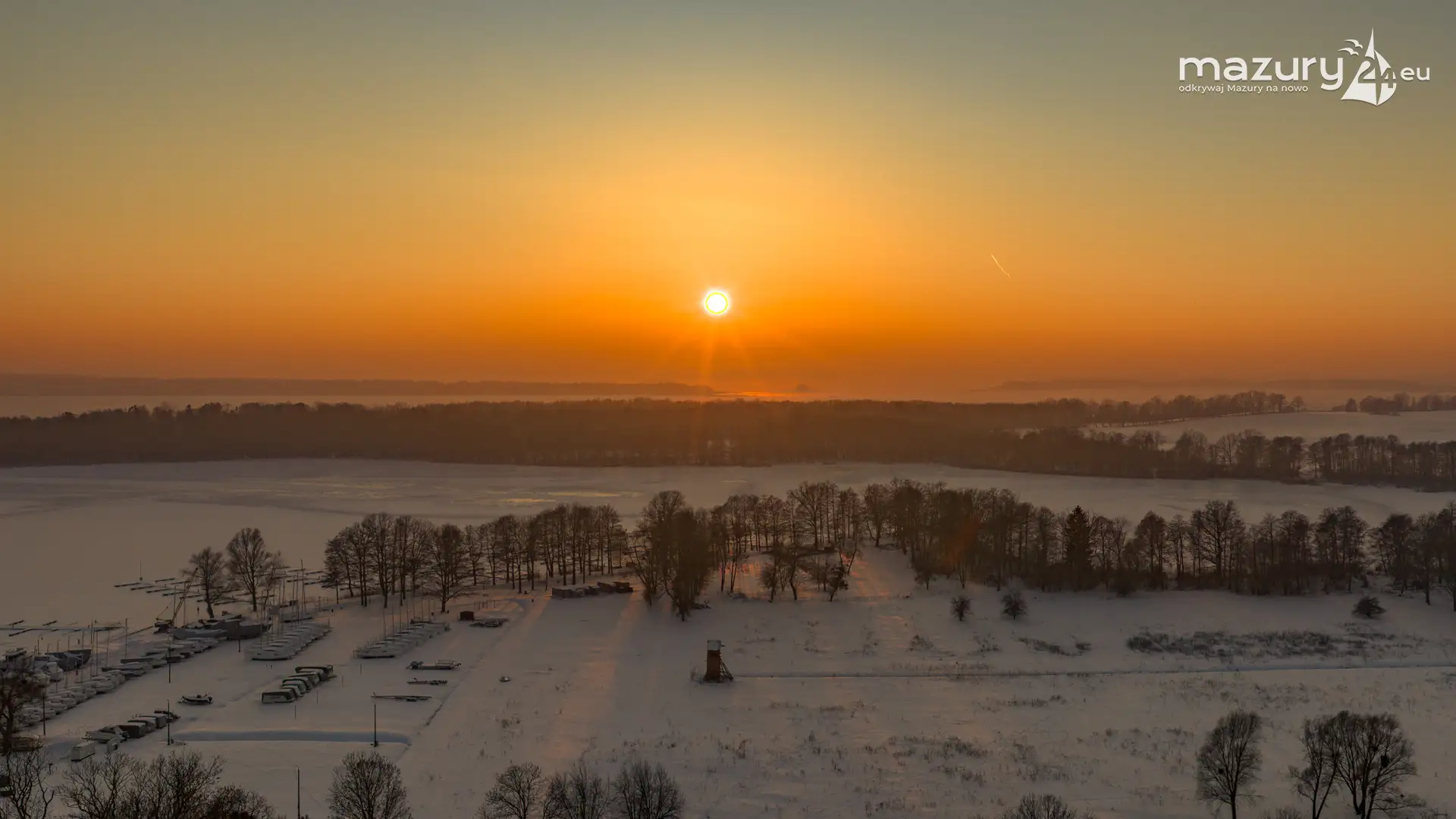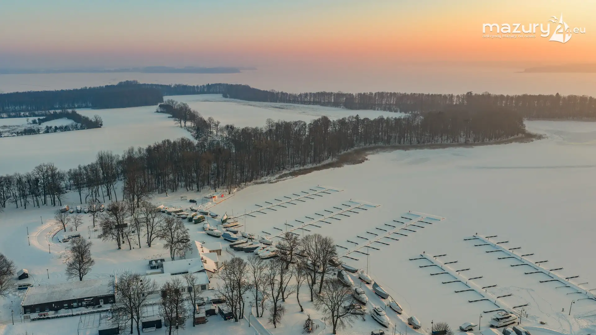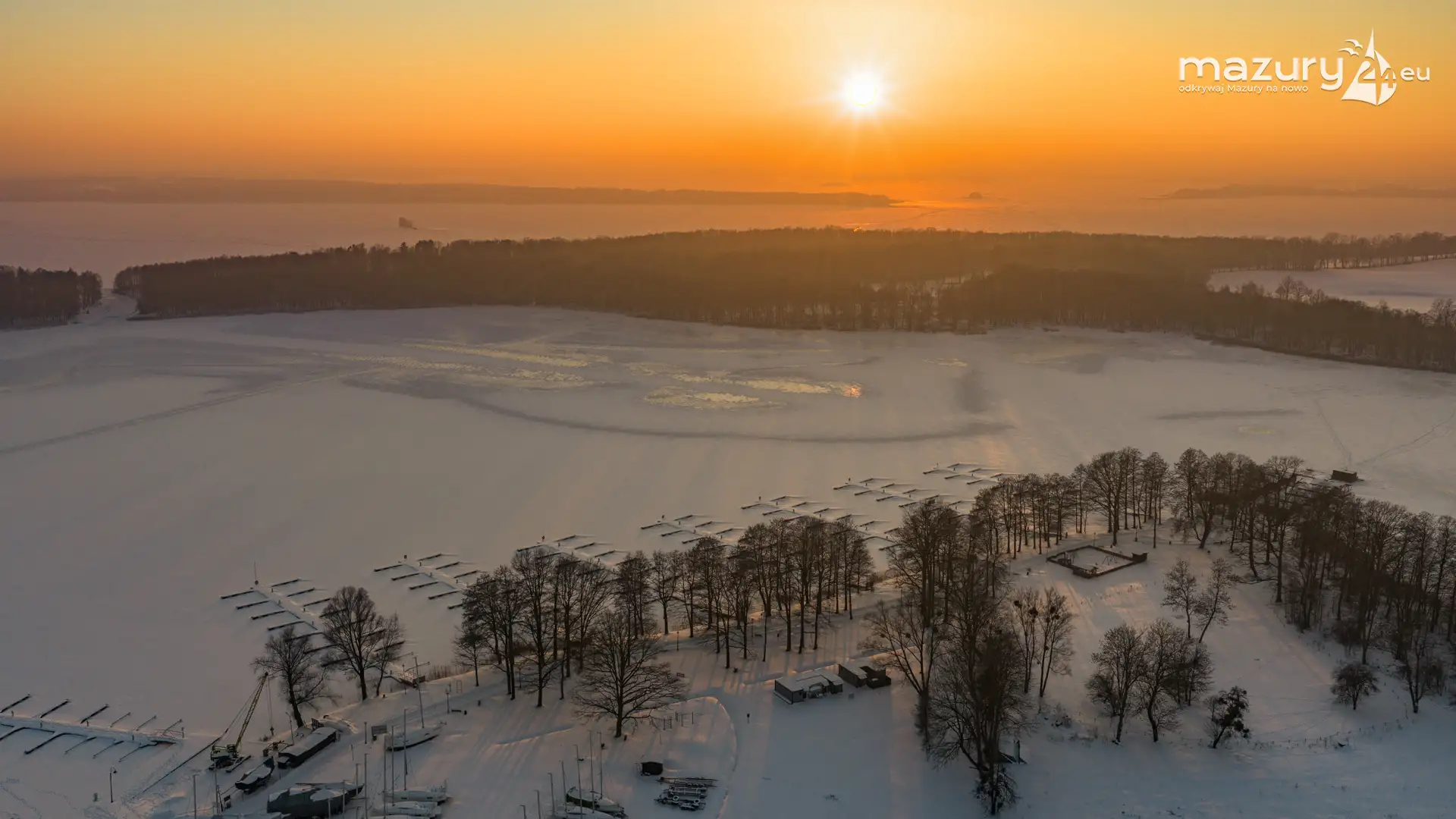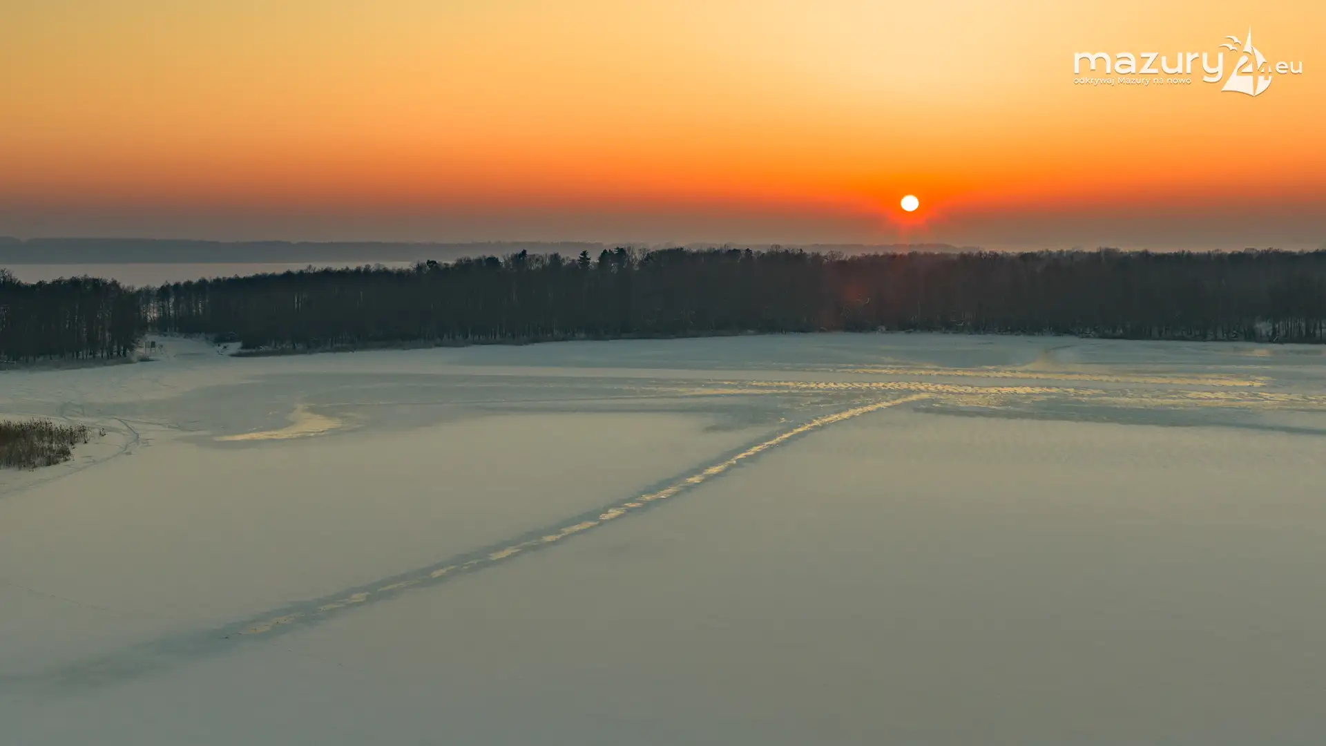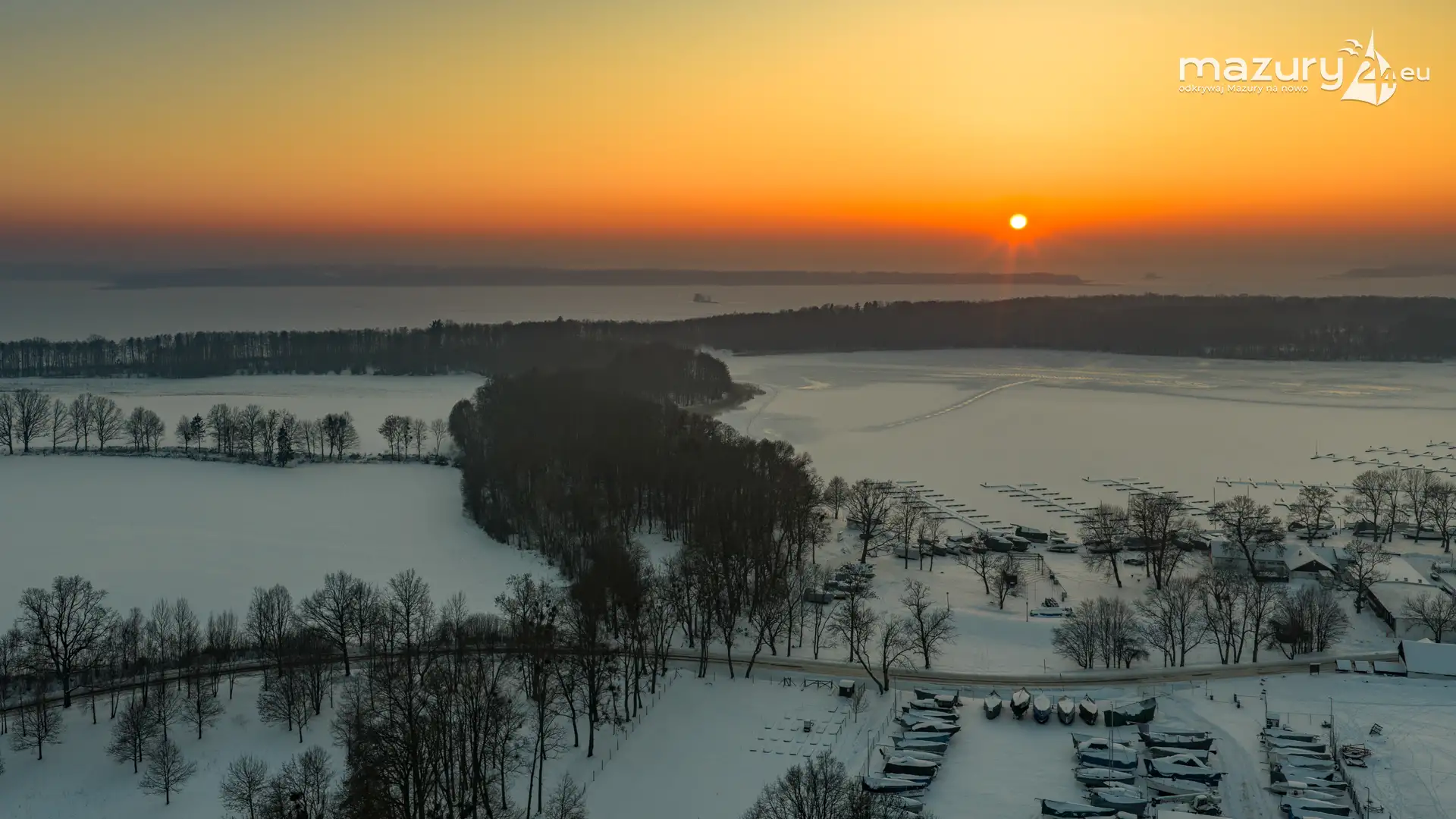 Zachód słońca nad jeziorem Bocznym z drona, styczeń 2026 r.