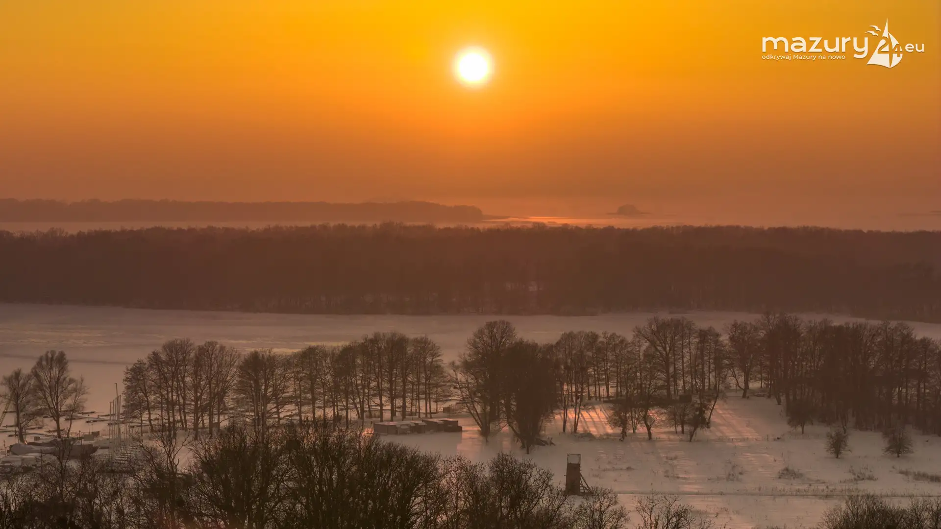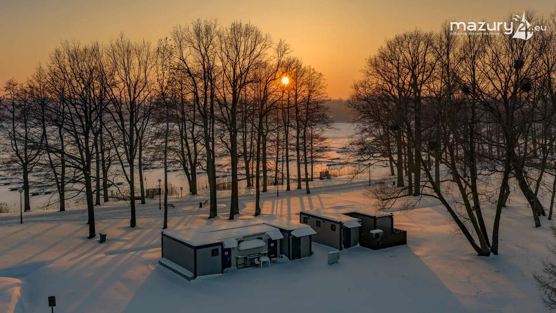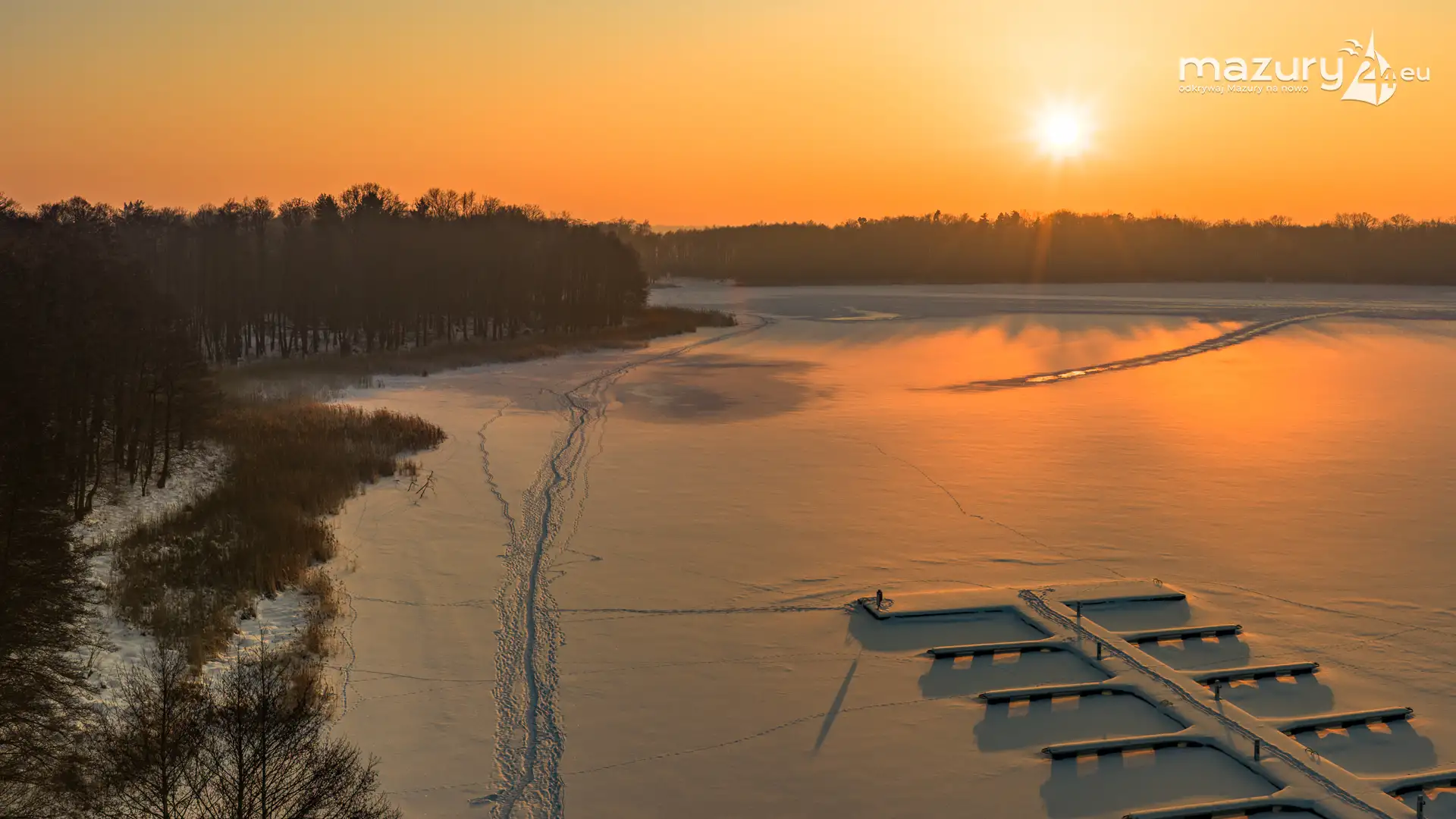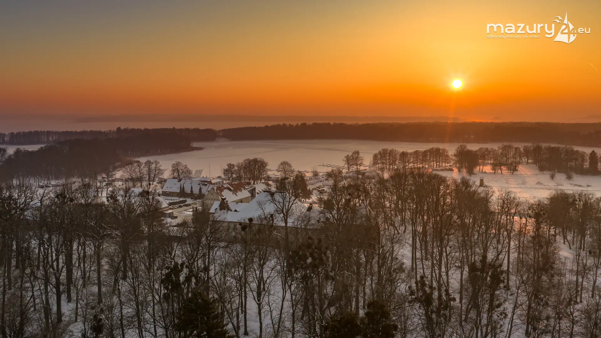Zachód słońca nad jeziorem Bocznym z drona, styczeń 2026 r.