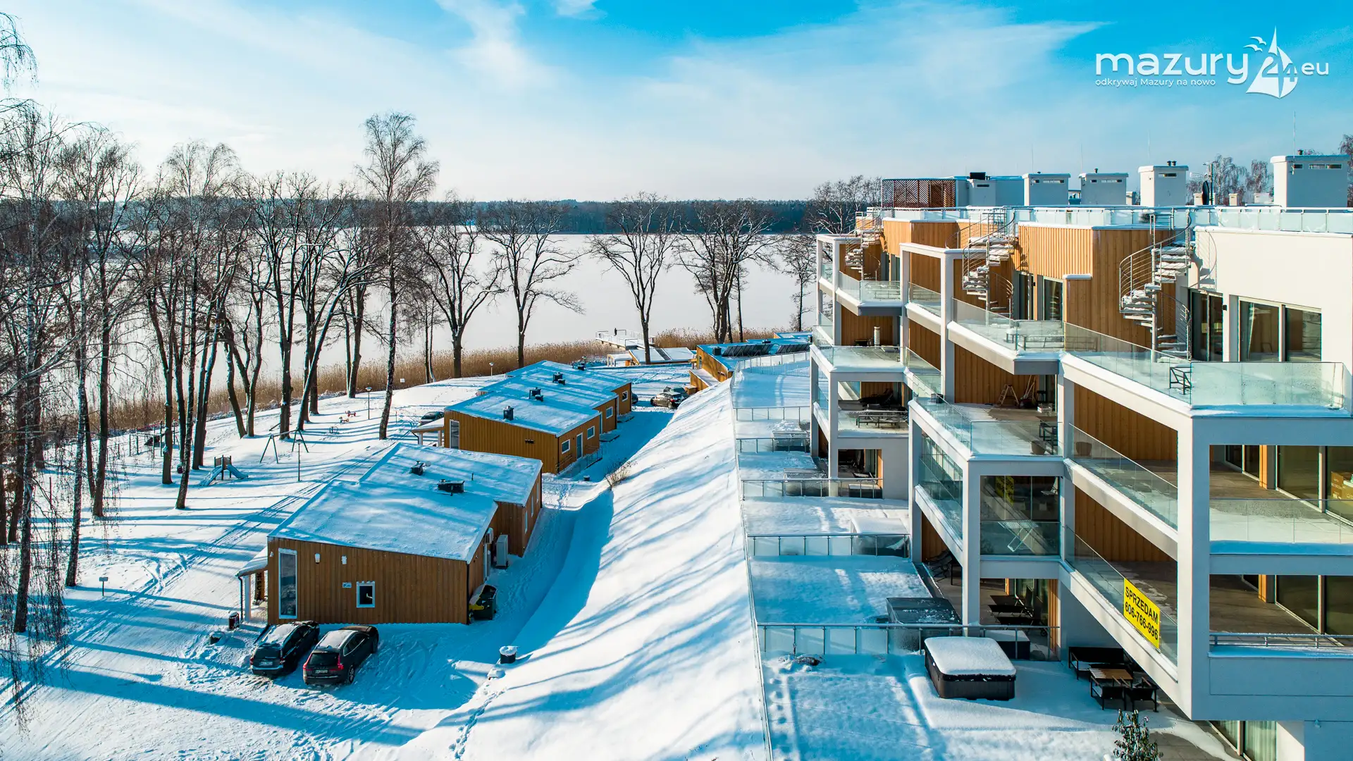 Różne miejsca na Mazurach na zimowych zdjęciach z drona, styczeń 2024 r.
