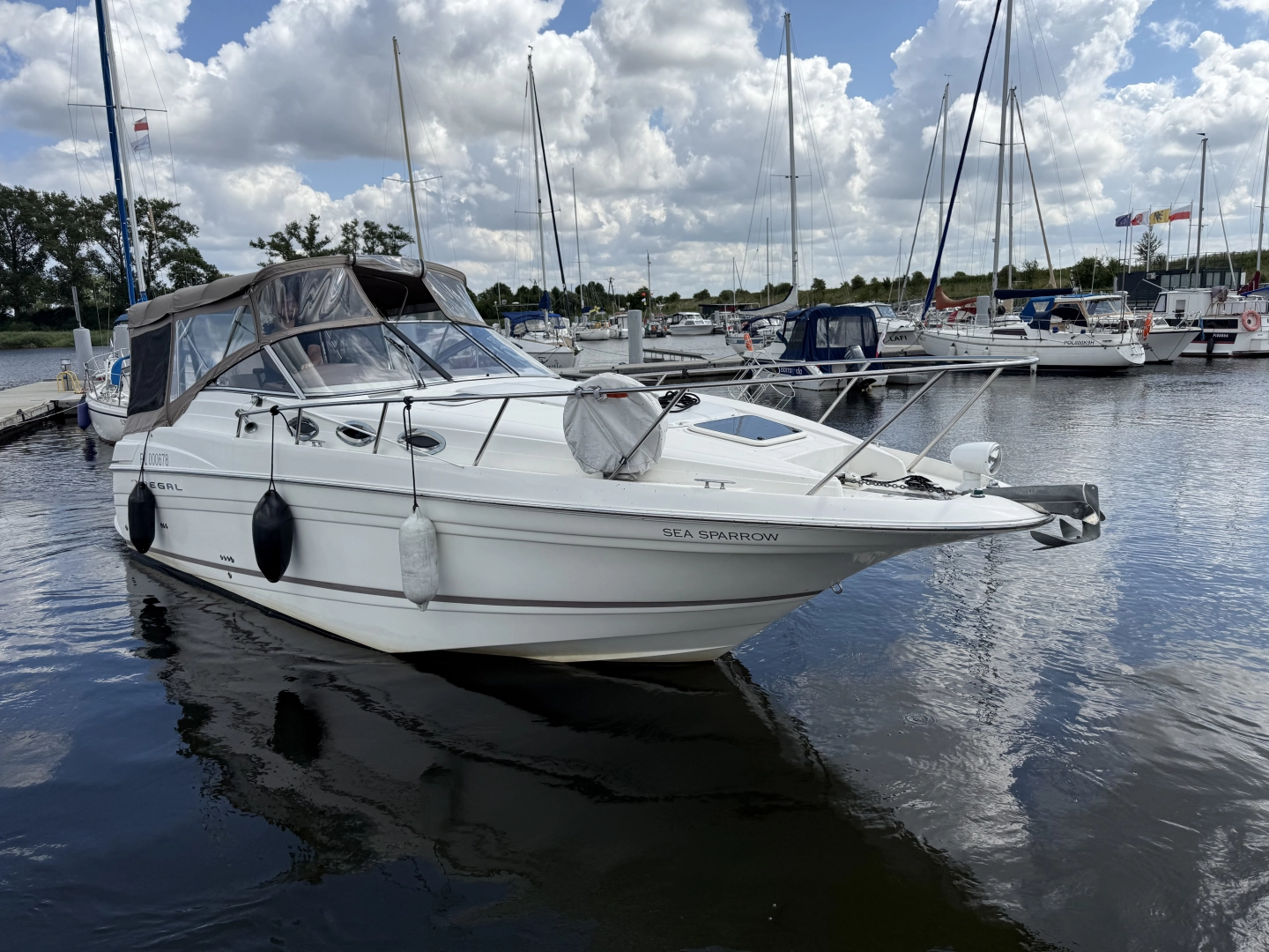 Dzień dobry sprzedam łódź motorową REGAL Commodore 2765 zbudowaną w 2003 r. Łódź sprowadzona do PL w 2006 r. i od tego czasu użytkowana tylko i wyłącznie przez 2 użytkowników . Przepływane zaledwie 450mtg Wymiary długość 9,10 m, - szerokość 2,59 m, wysokość 2,15m, - zanurzenie 90 cm. Zarejestrowana na 10 osób. Oddzielna sypialnia, dodatkowo rozkładany materac w mesie. Jacht serwisowany na bieżąco . Łódź jest w doskonałym stanie, pełen oryginał, nie wymaga żadnych nakładów. Napęd stanowią 2 silniki Volvo Penta 4,3 GL każdy. Oba silniki po pełnym serwisie, Wszystkie przeglądy - wymiana oleju w silnikach, przekładniach itd. robione przed każdym sezonem. Wszystkie zimy spędzone w hali. Łódź przed tym sezonem otrzymała: - malowanie dna łodzi antifoulingiem - akumulatory ER450 - nowe szyby w bimini - pełna polerka - nowy ster strumieniowy Lewmar - nowy, sterowany z konsoli, bardzo mocny szperacz LED - nowe radio Pioneer ze sterowaniem oraz b-th - silniki działają bez zarzutu wymienione dwie Zetki na Zetki z przebiegiem około 100 m/gDodatkowo w poprzednim sezonie wymieniono cały osprzęt lekki (odbijacze, kosze, cumy, gaśnice, bosaki, zestawy ratunkowe). Regal posiada bardzo wiele udogodnień, m.in: - płyta grzewcza – kuchenka - mikrofala - lodówka z zamrażarką - klimatyzacja z grzaniem - toaleta, macerator, prysznic w łazience oraz dodatkowy rufowy zewnętrzny, zlew zewnętrzny, - materac dziobowy do opalania - kotwica dziobowa automatyczna - oryginalna - moskitiery w bulajach - sterowane trym klapy - radio morskie - kompletne duże bimini + plandeka transportowa - głębokościomierz Łódź do obejrzenia do 15.10.25 na wodzie, po tym terminie będzie zimowana w hali w Błotnik koło Świbna . Cena 185.000 PLN Dla zdecydowanego Klienta dedykowana przyczepa w cenie , przyczepa nie zarejestrowana .Po więcej informacji zapraszam na priv, tel. 788748120
