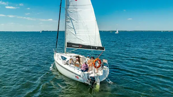 Są to z pewnością jedne z najlepszych jachtów oferowanych na kursach żeglarskich w Polsce – bezpieczne, starannie utrzymane i specjalnie przystosowane przez nas do szkoleń. Jachty te wyposażone są w ogrzewanie postojowe, lodówki, zbiorniki na wodę, instalację elektryczną (230V podczas postoju w porcie), najwyższej jakości środki ratunkowe oraz system szybkiego refowania żagli przy silniejszym wietrze.